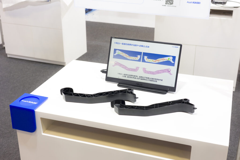 野本「通常のものづくりでは、コンセプトの提案後、設計・試作・実験を繰り返し検証するために非常に時間がかかってしまいますが、事前にシミュレーションを行うことによって試作回数を減らすことができます。その際に設計空間において材料の最適な配置を探し出す構造最適化シミュレーション技術、『トポロジー最適化』を行うことで、材料の使用を最小限に抑えて重量を減らしながら、強度や剛性など性能を最大化する設計を見つけることができます。私たちは部品や製品を軽量化したいというお客様に対して、旭化成が長年培った多様な樹脂成形に関する知見と、このトポロジー最適化を用いて、高性能で軽量なサステナビリティに配慮した樹脂部品や製品の最適設計をご提案しています。」