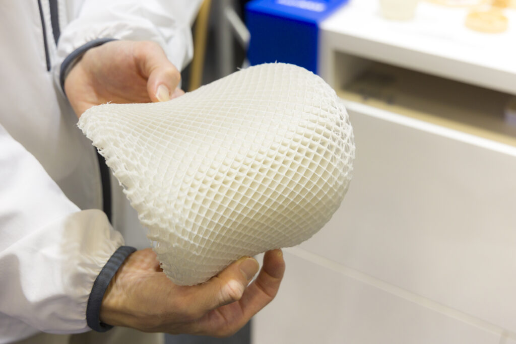 本庄「SEBS/CNF造形の特徴は、ゴムのような柔らかさと、低皮膚刺激性です。人に触れる製品に適していて、個人に合わせるオーダーメイド・インソールや、握力補助スプーンのグリップなどの自助具への応用を期待しています。クッション材としても利用でき、内部充填率の調整によって硬さは容易に調節できます。」