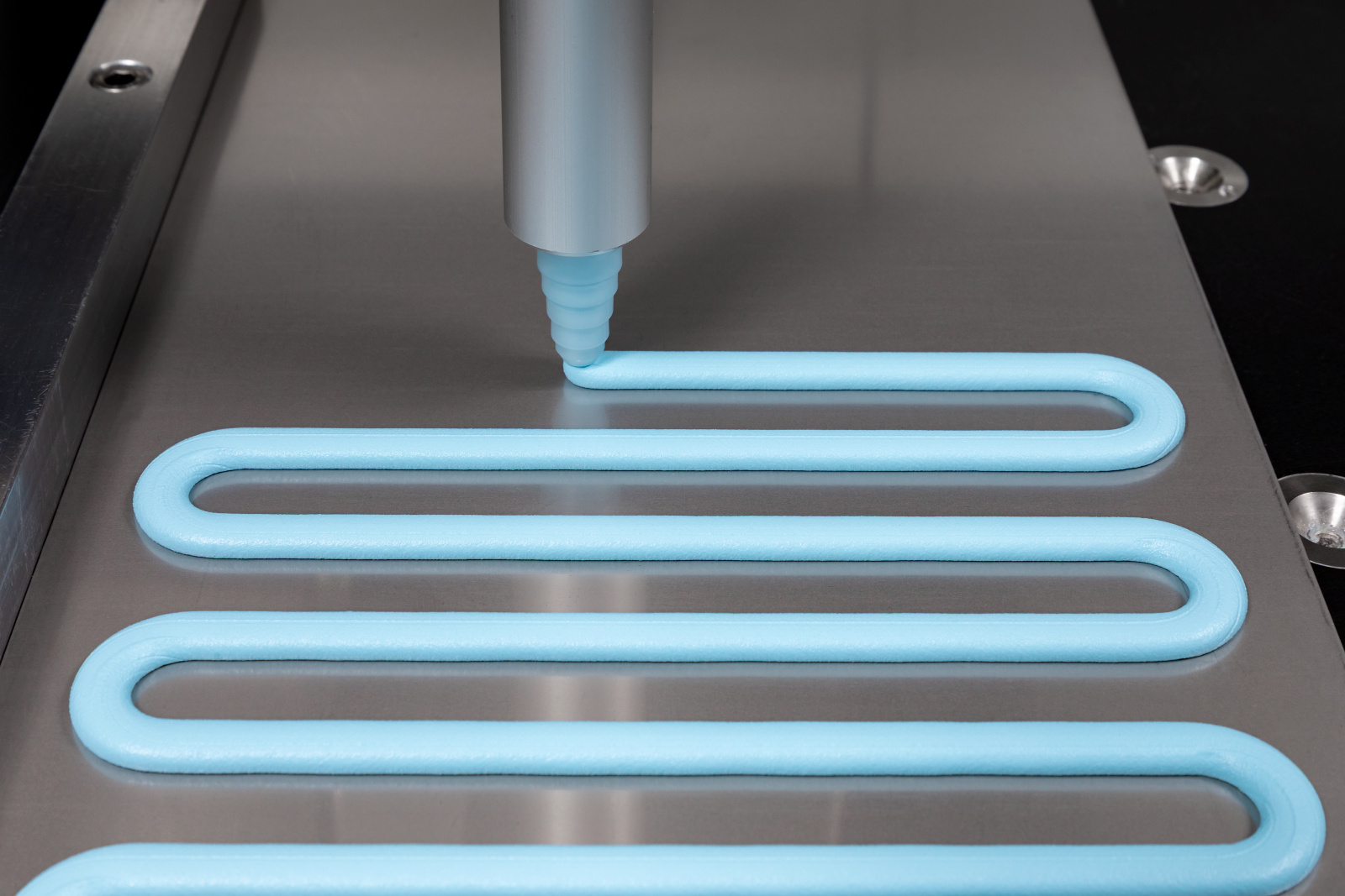 2液・室温硬化タイプで完全硬化させることで、基材の熱収縮・膨張で材料が押し出されるポンプアウトやブリードアウトなどの現象が発生しない仕様です。チクソ性を保有するため、狙った形状・塗布厚みを調整することが可能です。