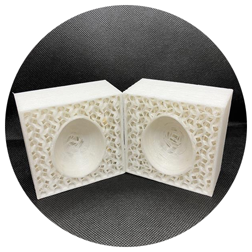 SEBSは3Dプリンティングにおいても反りや収縮が少なく、設計データ通りの形状を高精度に再現できます。積層構造や充填率を工夫することで、複雑な意匠やディテールも安定して造形可能です。
