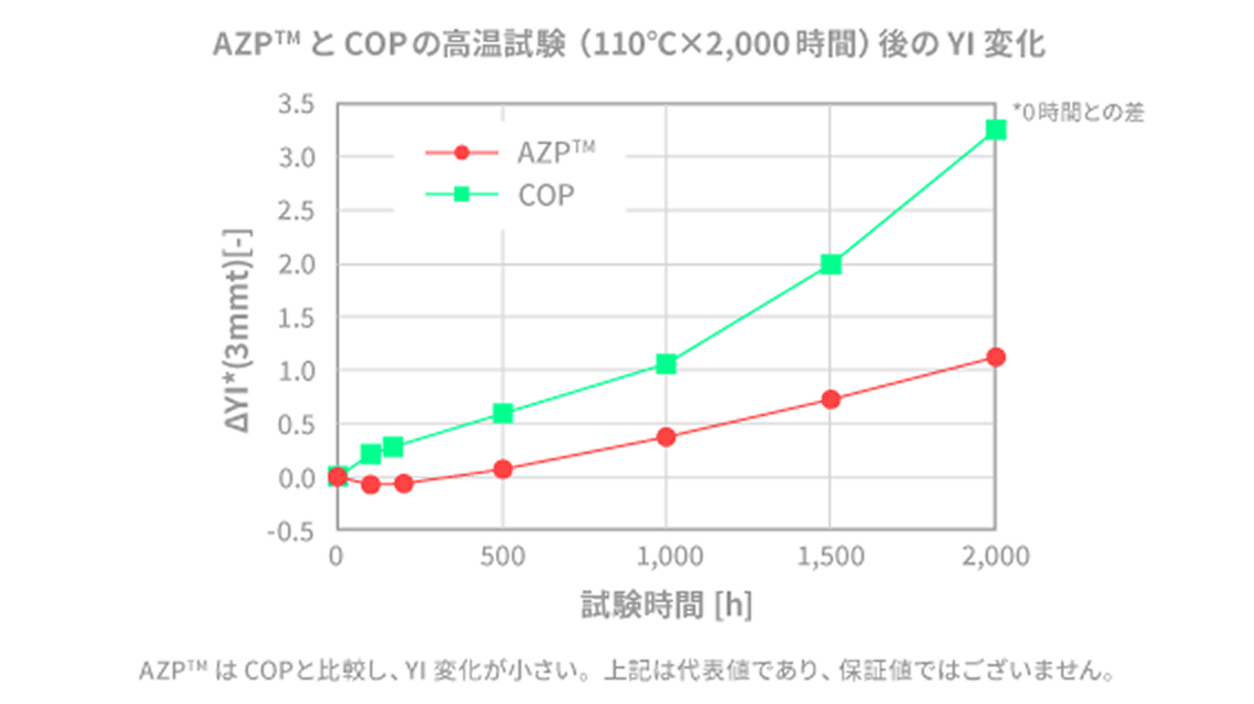 AZP™は、耐熱性が高く高温環境下での形状安定性に優れます。そのため、高温に晒されることの多いモビリティ部品に最適な素材です。耐光性にも優れ、高い性能が求められるディスプレイカバーやヘッドランプ等の用途においても、美しい製品外観を維持します。